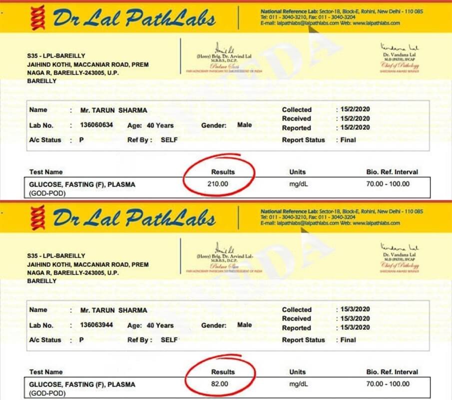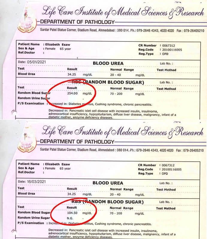 With Dia Amrit I saw my blood sugar level drop significantly from 220 mg/dl to 140 mg/dl. Thank you Goodveda😊❤