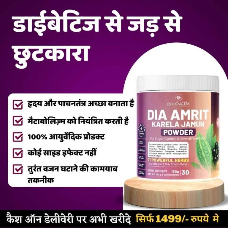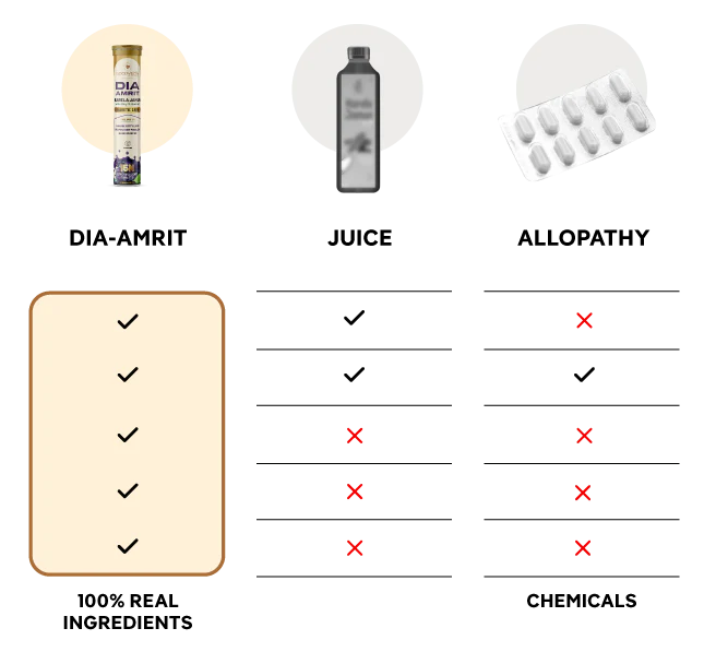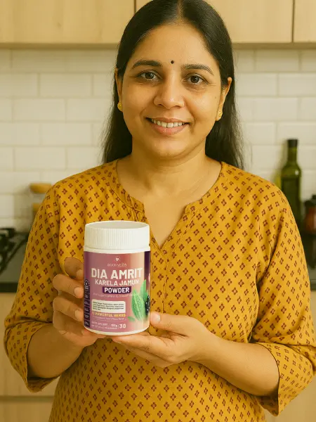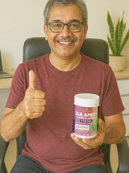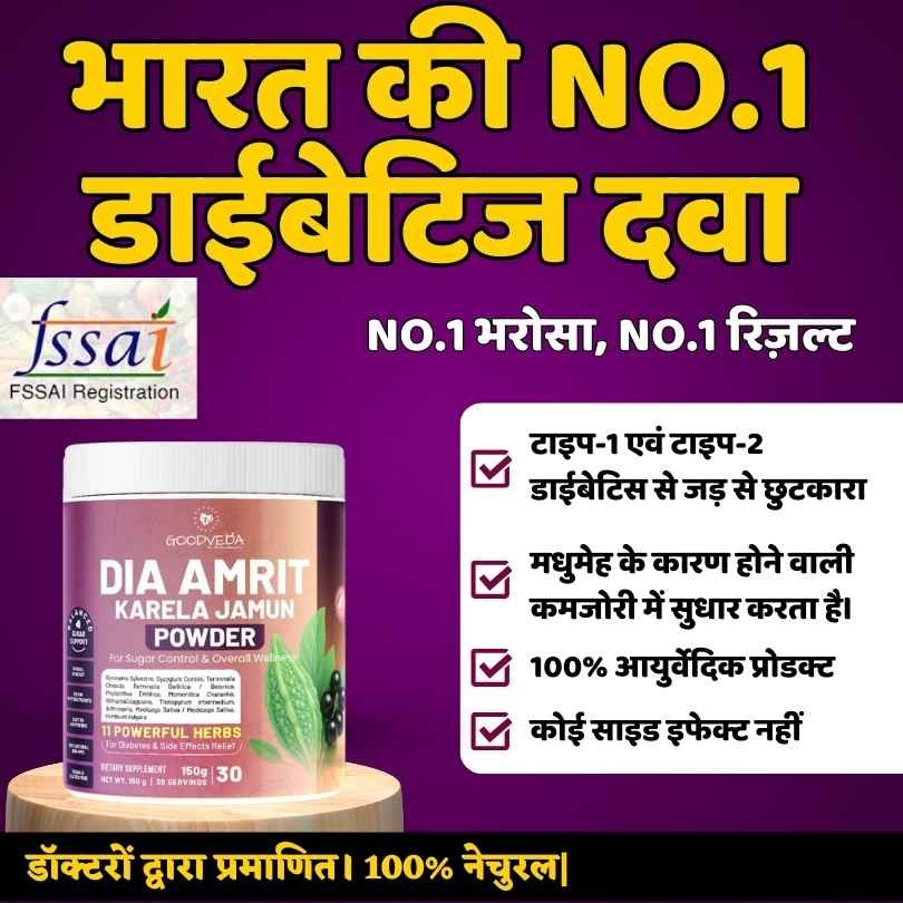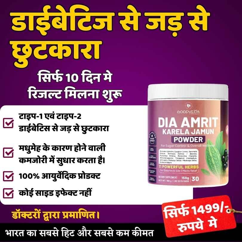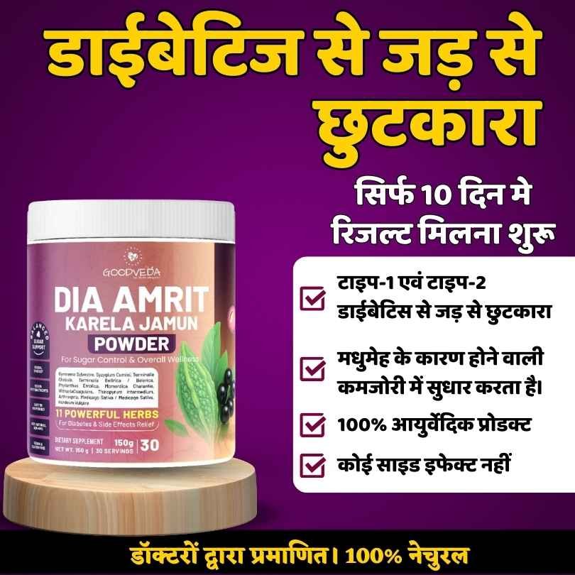 हमारे डॉक्टरों ने अपने कई वर्षों की शोध के बाद आयुर्वेद की 100% असली और शुद्ध जड़ी-बूटियों का उपयोग करके Dia Amrit Karela Jamun  बनाया है। इस आयुर्वेदिक दवा को हमारे डॉक्टरों ने कई लाख लोगों को डायबिटीज के लिए सुझाया है, जिससे उनको अच्छे प्रभाव देखने को मिले हैं।