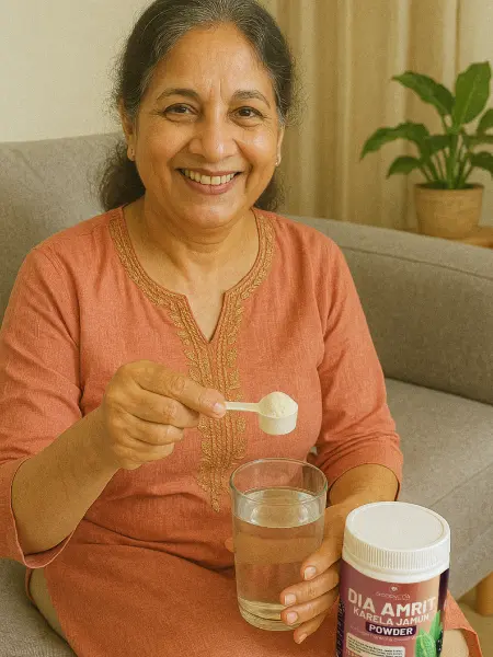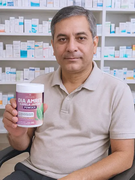 "Dia Amrit has been a lifesaver for me! After struggling with high blood sugar levels at 220 mg/dl, I decided to try it out. To my amazement, my levels dropped to 140 mg/dl in no time. Thank you, Goodveda, for giving me hope and helping me regain control of my health!"